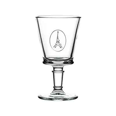 Verre à pied en verre pressé, décoré d'un médaillon "Tour Eiffel".