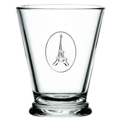 Gobelet 26 cl Symbolic Tour Eiffel Ce gobelet est en verre pressé décoré d'un médaillon Tour Eiffel En verre mécanique, très résistant Il passe au micro-ondes et au lave-vaisselle Evitez cependant les chocs thermiques trop importants Capacité 26 cl H 10,5 cm diamètre 8.8 cm
