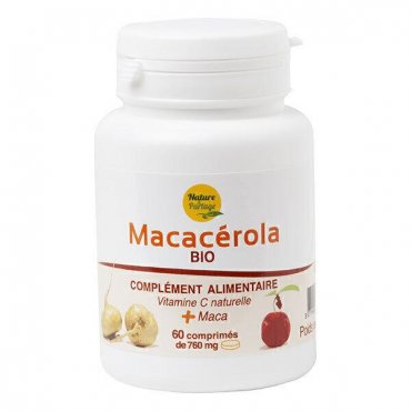 Macacérola bio, une association inédite d’Acérola et de poudre de Macaquiapporte vitalité à l'organisme. Profitez de la complémentarité entre l’effet immédiat de la vitamine C de l’Acérola et l’effet longue durée de la poudre de Maca. Pilulier de 60 comprimés - Cure de 30 jours.