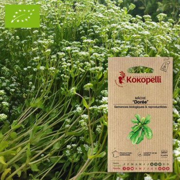 Une très ancienne variété de mâche, plus résistante à la montaison en fin d’hiver que les variétés à feuilles vertes, offre au printemps une délicieuse rosette de feuilles couvertes de panachures jaune-or.