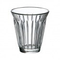 Petite tasse en verre pressé mécanique. Décor en taille en forme de boutons et de barrettes.